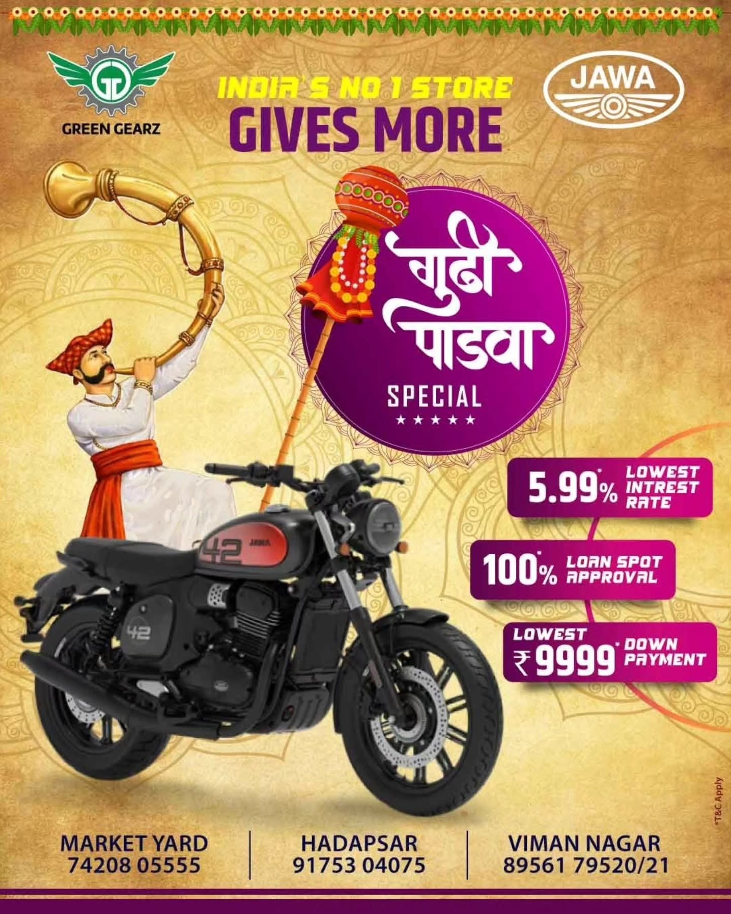 Celebrate Gudi Padwa with power & style with the iconic Jawa 42 at Green Gearz β Market Yard π₯