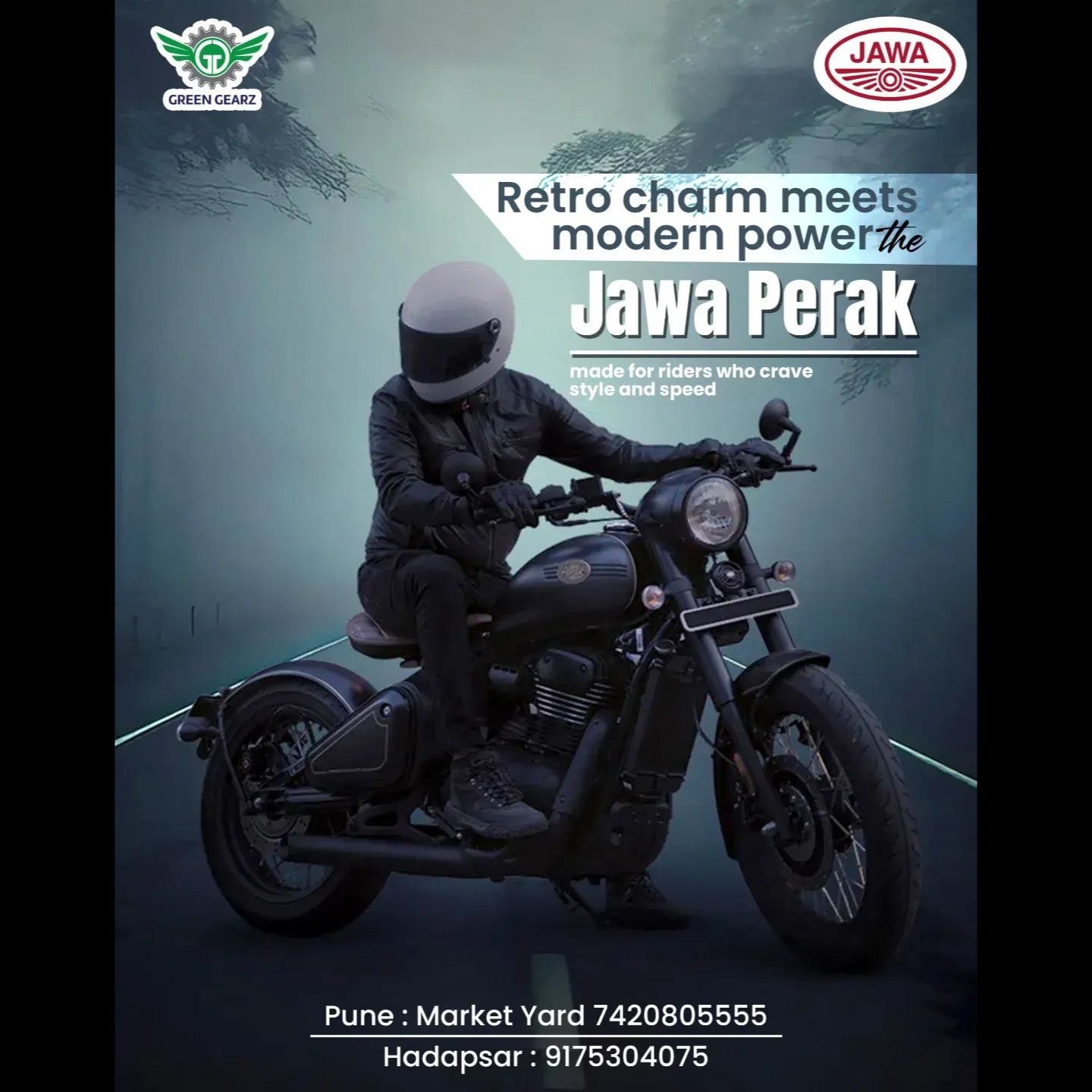 Ride the legend today at Green Gearz Mobility LLP – Jawa Yezdi Showroom and feel the dominance of the Perak.